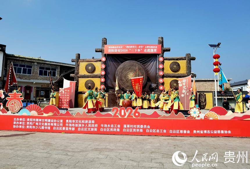 人民网贵阳2月9日电(记者王秀芳)2月6日,白云区牛场乡2026年“瑞马迎新春·民俗共传承”活动在蓬莱村非物质文化遗产广场正式启动。开场舞《欢乐中国年》以红绸灯笼与灵动舞步,瞬间点燃了全场喜庆祥和的节日氛围。