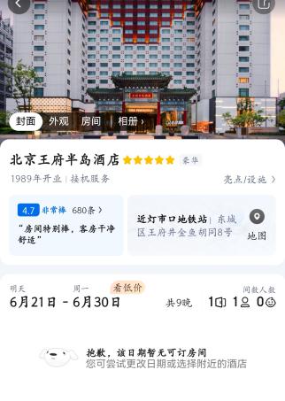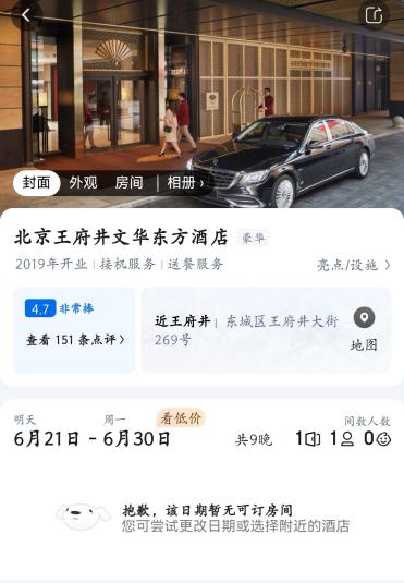 6月20日,21世纪经济报道记者在京东旅行预订时发现戏剧性的一幕:位于“懂住榜”榜首的北京王府井(600859)文华东方酒店,点开却是空空如也,记者接连点击了榜单的前五名,仅有一家酒店有房型及报价。转战其他OTA平台,却发现上述榜单酒店都房源充足。