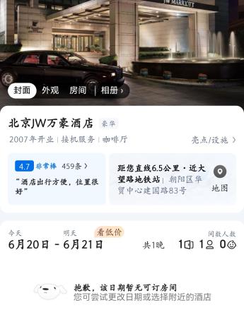 无独有偶,北京JW万豪酒店、北京王府半岛酒店、北京颐和园安缦酒店等一众豪华型酒店在京东旅行“懂住榜”上也频频“翻车”。奢华榜排名前五的酒店中,其中有4家的情况跟王府井文华东方酒店一样,都没有报价。个别酒店偶尔还会出现表面显示有房,点击购买却提示库存不足的尴尬状况,这无疑给用户带来极差的体验,也凸显出京东旅行在高端酒店供应链上存在较大问题。