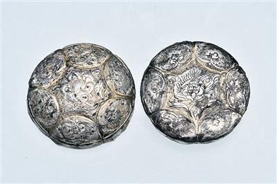 新疆吐鲁番市巴达木东墓群出土的葵形鎏金银粉盒。